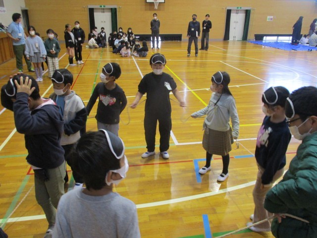 今日は、日本福祉大学の学生さんと福祉イベントで交流しました。点字を使って名刺を作ったり、アダプテッドスポーツをしたりしました。ほかにも校内のバリアフリーを探したり手話体験をしたりするなど様々な福祉に関する体験をさせていただきました。4年生のペアの児童と仲良く活動することができました。