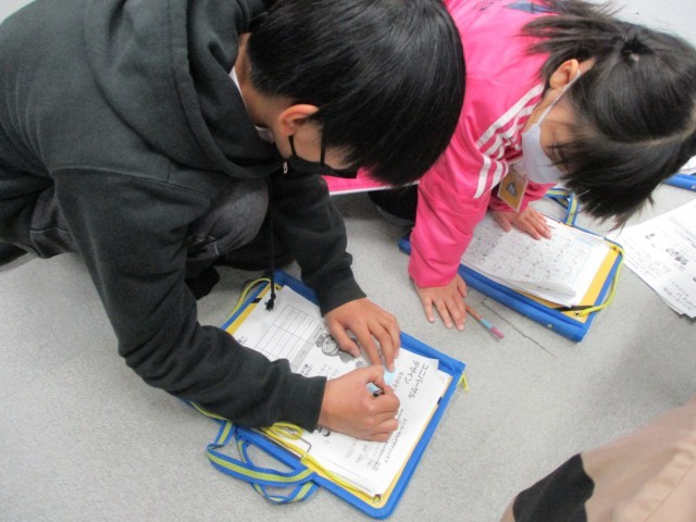 今日の福祉イベントでは、ペア学年の6年生と一緒にいろいろなブースを周り、点字や手話など様々な体験をしました。