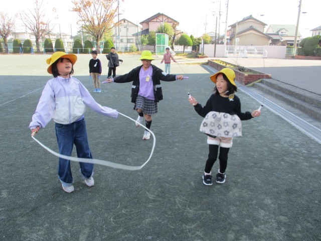 リズム縄跳びの曲に合わせて、練習をがんばっています。