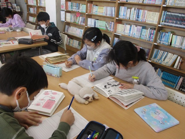 国語の単元でやなせたかしの伝記を学習しています。図書館で一人一人伝記を選び、自分なりにどんなことをしたのかまとめました。初めて知ることが多く、どの子も一生懸命取り組んでいました。