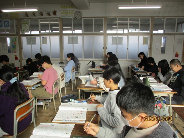 6年生の家庭科の授業の様子です。冬の過ごし方として、どうやって暖をとるかなどを学びました。
