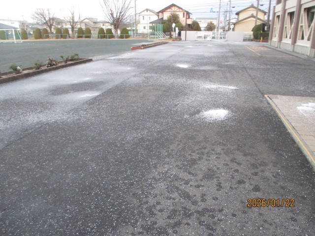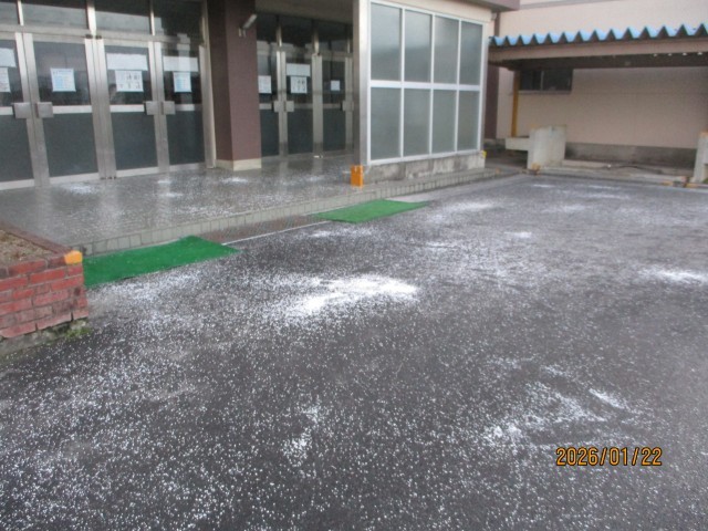 今夜から明日の朝にかけて、雪の予報となっております。本日、児童下校後に職員で融雪剤を散布しました。明日は気を付けて、登校してくださいね。