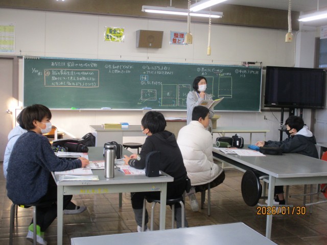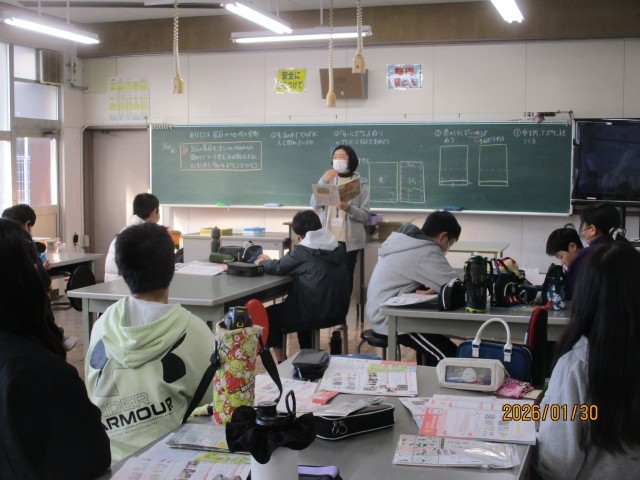 6年生の家庭科の授業の様子です。自分の家庭生活と地域の人との関わりについて考えました。