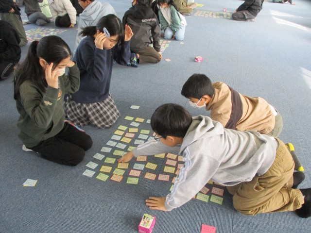 読み札が詠まれると、身を乗り出して札を探し、勢いよく「はい!」と札を取る姿が見られました。