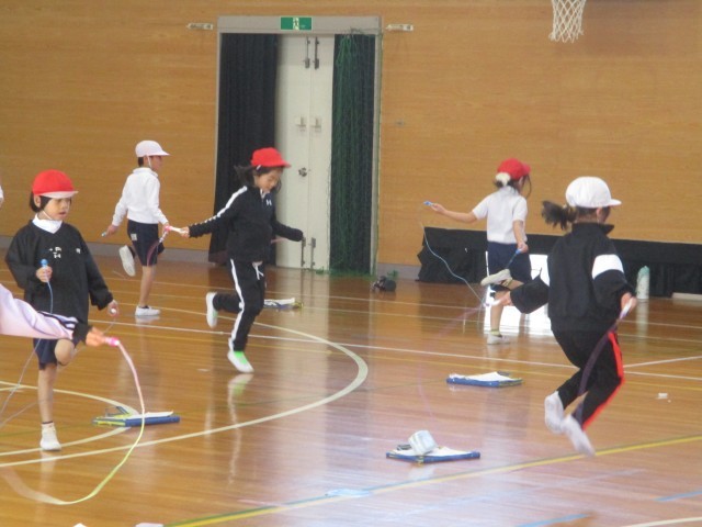 1年生 体育 なわとび 2/18 公開日 2026/02/19 更新日 2026/02/18 1年生の部屋 今日はなわとびの技の確認をしました。前跳び・後ろ跳び・かけ足跳び・あやとび・二重跳びなどの技が、12月と比べると大分上手になってきました。