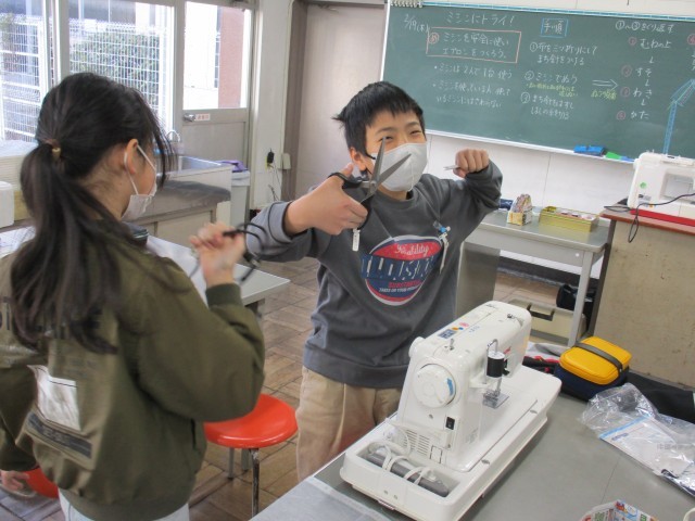 家庭科でミシンを使ってエプロンを作っている様子です。段々慣れてきてミシンの用意が素早くなっています。完成が楽しみです。