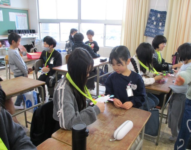 今日は卒業生を送る会の前に、6年生への感謝の気持ちを込めて在校生みんなで作った、ペンダントを渡しに行きました。お世話になった6年生にそれぞれお礼を言いながら、首にかけてあげていました。