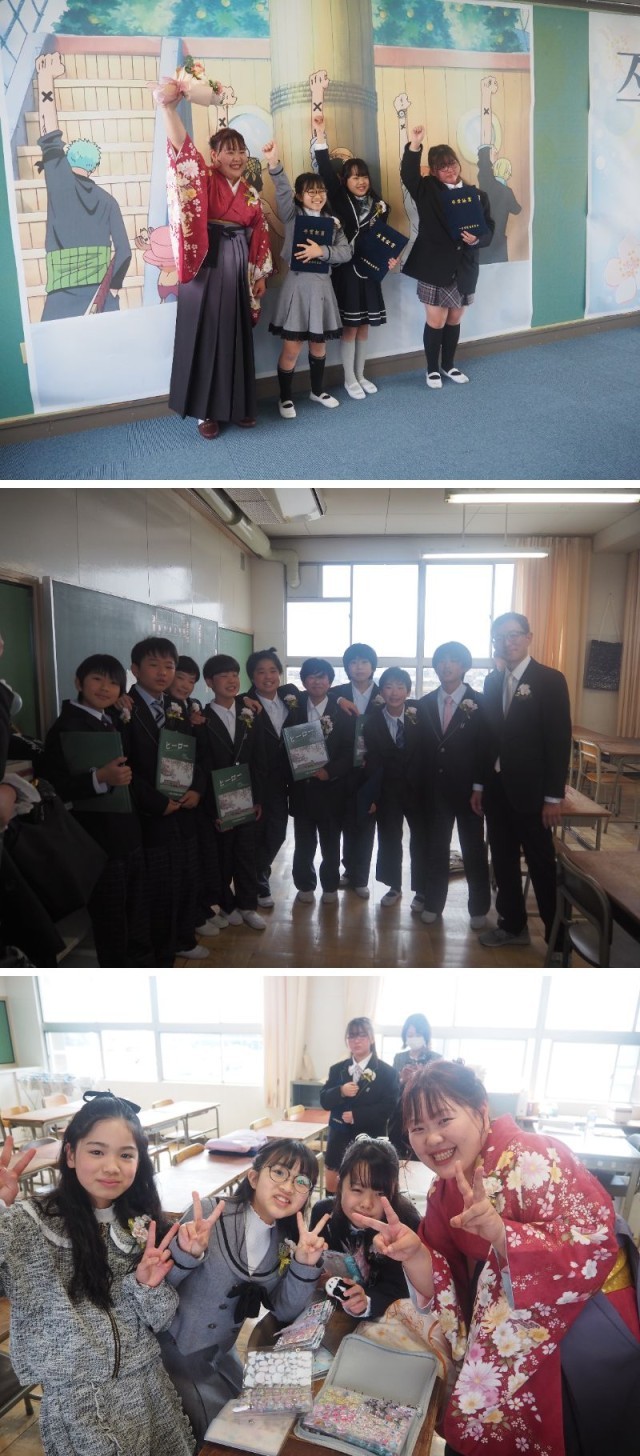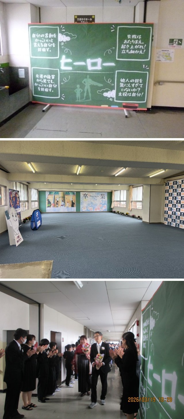 教室で最後の学級の時間を過ごし、記念撮影用フォトブースが用意されたひまわりホールへ。撮影会、スタートです。本日(3/31)をもって、本当に西成東小を卒業となります。明日からは、西成東部中の生徒です。夢を持って、目標をもって、自信もって頑張ってください。先生たちは皆さんのことを、ずっと応援しています!