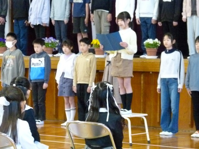 1年生のみなさん。ご入学おめでとうございます。35名のみなさんが西成東小学校の新しい仲間に加わりました。入学式では、きちんと校長先生のお話を聞けましたね。また、6年生の歓迎のことばや校歌を聞いて、明日からの学校生活をいっそう楽しみに感じてもらえたのではないでしょうか。1年生のみなさん、これからいっしょにがんばりましょう。