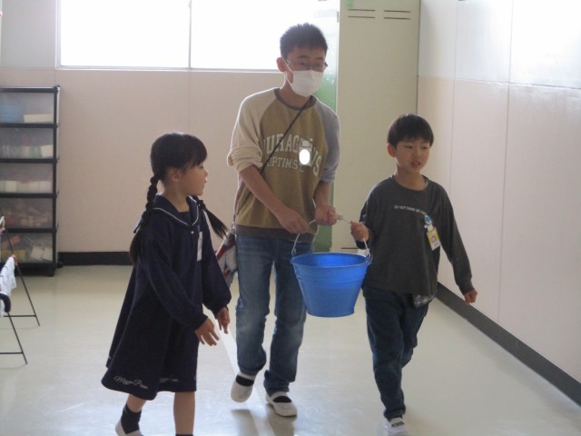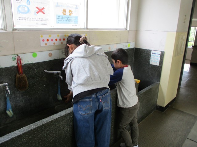 掃除の時間は、ペア学年の6年生に掃除の仕方を教えてもらいながら掃除をしています。お兄さん・お姉さんに優しく教えてもらって、子どもたちはとてもうれしそうでした。