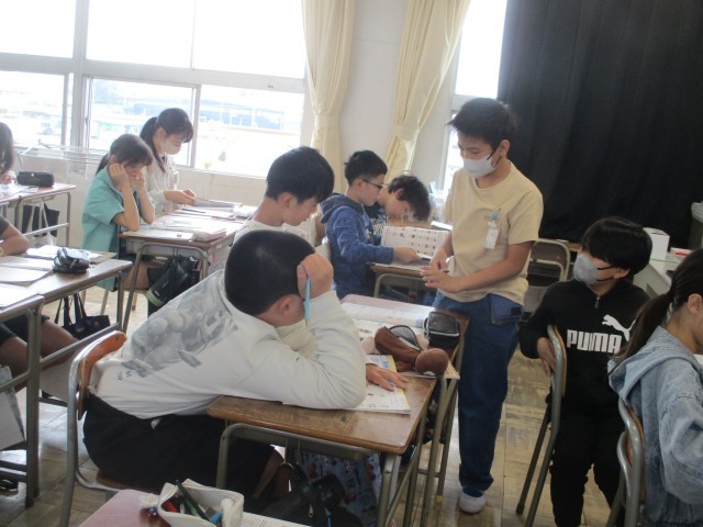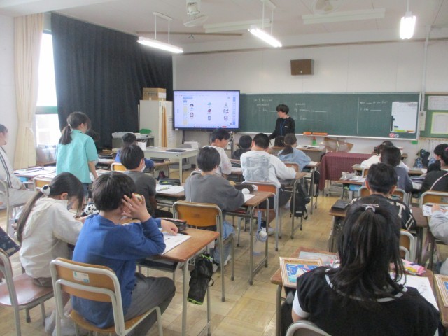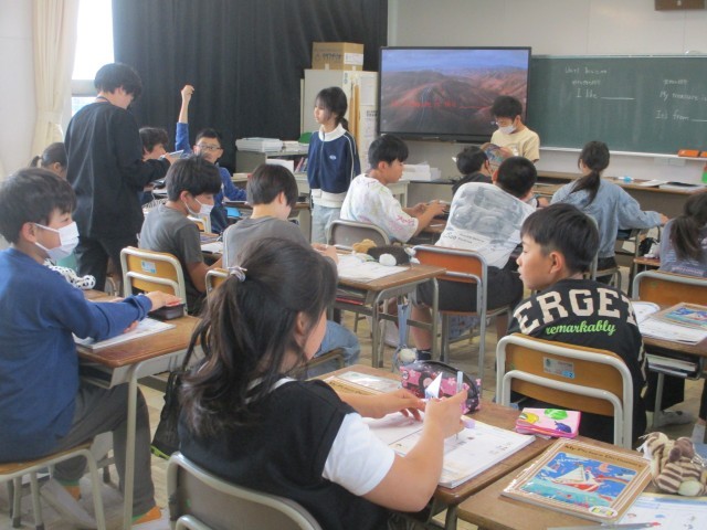 自分の宝物とその理由を紹介します。難しい表現を教え合いながら、友達と英語で交流しました。