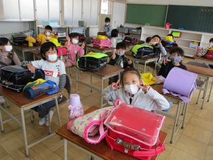 新型コロナウイルスの影響で、今日一日だけの登校になりましたが、子供たちは久しぶりの学校で、新しい担任の先生もきまり、元気いっぱいでした。また、手洗いは、1人ひとりが30秒間、入念に行っていました。また、しばらくして元気な子供たちの姿が見たいです。