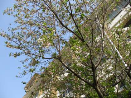 最後の写真は、北舎の南にある四季ザクラです。学校のサクラは、ほとんどがソメイヨシノですが、この四季サクラは一年中花をさかせ、冬が一番よく咲いています