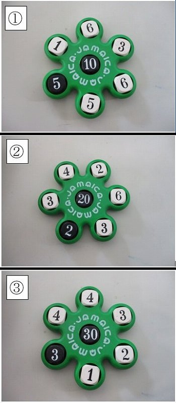 まず1.黒のサイコロの答えは10+3=13
