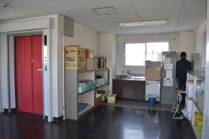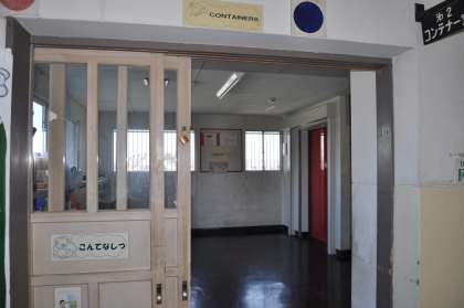としょかんから ろうかを あるいてくると コンテナしつが あります。