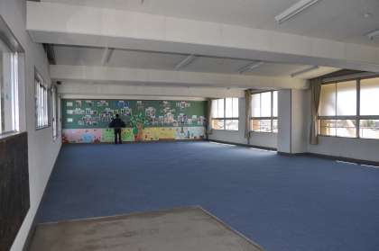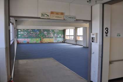 4ねんせいの ろうかを まっすぐ とおりぬけると ひまわりホールが あります。