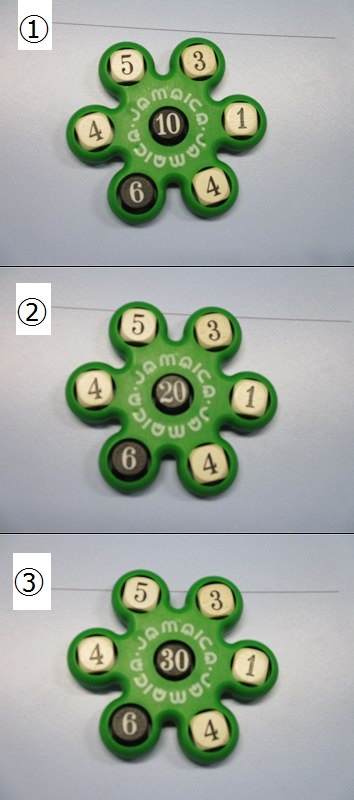 1.黒のサイコロ同士をたし算した答えがこのゲームのゴールです!たし算した答えを覚えておこう。