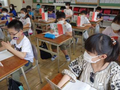 はじめに教科書を読んでいましたが、すばらしい姿勢で取り組んでいました。