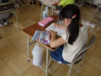 新しいクラスになってまだ数日しかたっていません。新しい友だちのことをよく知るために、自己紹介カードを作っていました。