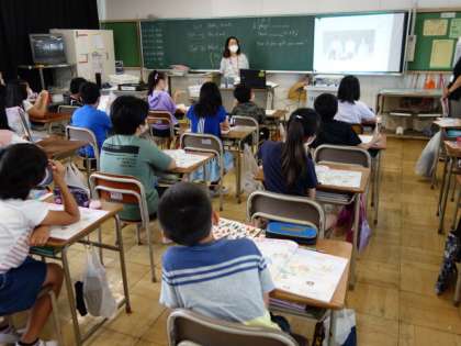 名前のつづりや好きな物、好きなことを尋ねる学習です。