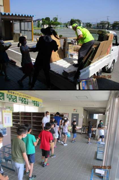 今日は、朝早くからPTA地区委員の方々のご協力により、資源回収活動を行うことができました。また、学校では地域の方が軽トラックを出して積み込んで下さったおかげで、古新聞や段ボール、本などを運ぶことができました。4年生の子たちは、昨日、資源を昇降口まで運びだしたり、今朝はトラックに積み込んだり、充実した活動ができました。