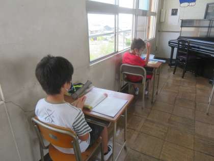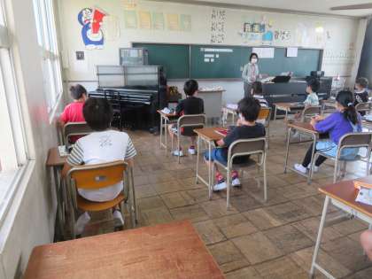 今日は、6年生が音楽の交流授業に参加しました。歌やリコーダーが使えない中、歌を聞いたり、リズム打ちをしたりなどしました。