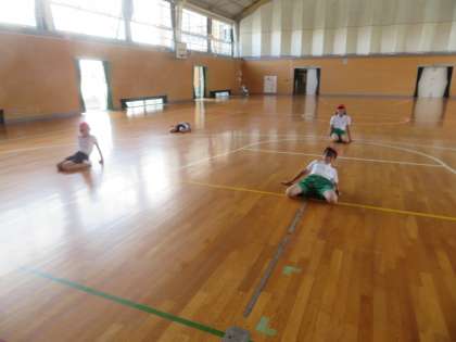 今日は、ふれあい組での初めての体育の授業でした。片足立ちやスキップ、動物歩きなど様々な運動をしました。子どもたちは、楽しそうに体を動かしていました。