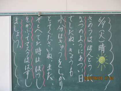 今日はまるで、真夏のような一日でした。水分補給や外ではマスクをとらせるなどの指示を何回も出して過ごさせました。