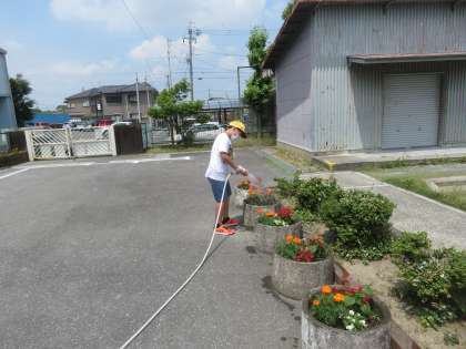 暑い中の水やり(6/9)・・・園芸飼育・掲示委員会 公開日 2020/06/09 更新日 2020/06/09 学校日記 今日から委員会活動がスタートし、鳥小屋ではインコのえさや水やり、掃除を、北の花壇では、花の水やりを行いました。特に、水やりは範囲が広く、暑さで土の乾きが早いため、たくさんの水を与えるのに時間がかかりました。初めての作業に子どもたちは戸惑いましたが、一生懸命に取り組んでいました。