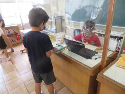 今日は、5時間目に図書館で司書の先生からコロナ対策も含めた本の貸し借りの指導を受けました。そのあと、先生の指導内容をしっかり守って、本を借りて全員が借り終わるまで、本を読んで待っていました。