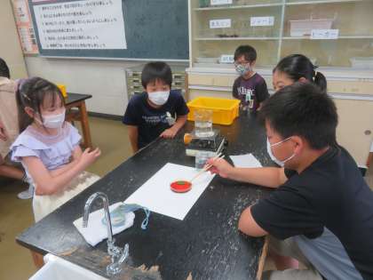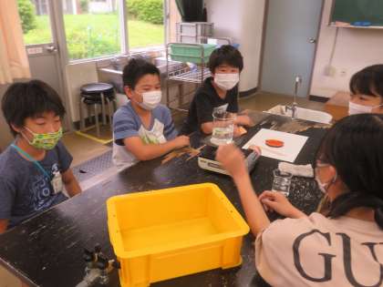 理科の実験(6/10)・・・ふれあい 公開日 2020/06/10 更新日 2020/06/10 ふれあいの部屋 今日は、6年生の理科の交流で「ジャガイモの葉からでんぷんが出るか」という実験を行いました。グループの子に助けられながら、実験の様子を見たり、その結果を考えたりすることができました。