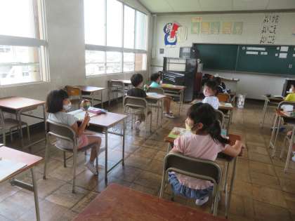 交流の授業がんばっています(6/12)・・・ふれあい 公開日 2020/06/12 更新日 2020/06/12 ふれあいの部屋 ふれあいでは、音楽の交流授業がありました。6年生は歌の階名を書くことやリコーダーの指使いが、3年生はリズム打ちを中心に活動をしていました。子どもたちは、頑張ってみんなの動きについていきました。