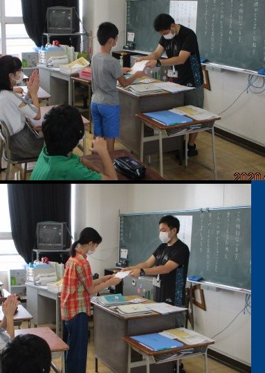放送室で教務主任の先生が司会、校長先生が任命状を読み上げ、各教室で担任の先生から任命状が渡されました。