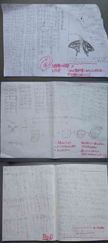自分で、自由に、やりたいこと、やるべきことをやる 自主学習をみせてもらいました。あくまで一部の紹介です。漢字のミニテストを終えて復習したり、今までの漢字の総復習をしたり、社会や理科では気になることをさらに深く調べたり、今学習しているわり算のために九九をおさらいしたりと様々な物がありました。楽しんで学習するもよし!自分で必要な力を判断して養うもよし!予習復習する中で不思議に思ったことを調べるもよし!なんでもよし!