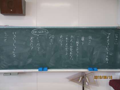 子ども達からは「ビールが飲めるようになったら」「高校を卒業したら」「仕事を始めたら」など様々な大人のイメージが出ました。