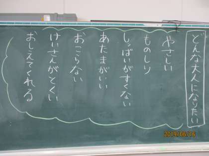 そのあと「どんな大人になりたい?」という問いかけに対しては「やさしい」「おこらない」「教えてあげる」「ものしり」などの意見が出ました。