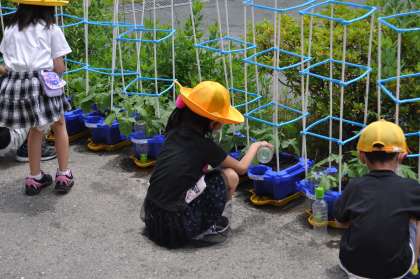アサガオは根から水を飲むこと、水をやるときは地面に近いところから水をかけることを勉強しました。