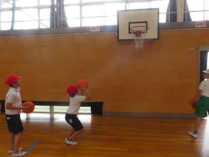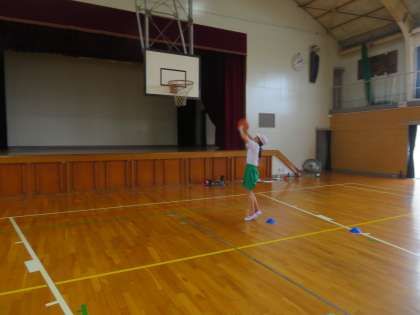 本日、6年生は体育の授業でバスケットボールの学習を行いました。接触が心配される試合をやらない代わりに、個人技能を高める練習をたくさん行っています。今日も、45度からのセットシュートと、ランニングシュートの練習を行いました。何度か練習するうちにコツをつかみ、たくさんシュートが入るようになっていました。