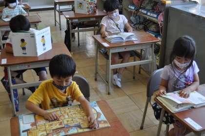 給食の後は、静かに読書をしています。 落ち着いた1日を過ごせています。