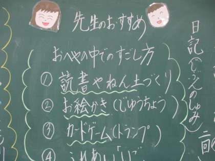 今日は、久しぶりに一日ずっと教室ですごしていました。晴れの日は、ほとんどの子が外へ遊びにいってしまのですが、きょうは、図書館へ行く子や、生き物と触れ合う子や、折り紙をやる子など様々でした。しばらくは、こういう日にも、コロナ対策をかんがえて過ごさせていきたいと思います。