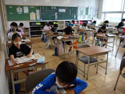 動物園の絵の中にある漢字をできるだけ多く使って、様子を表す文を作っていました。