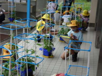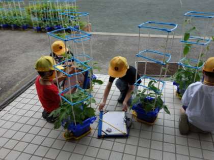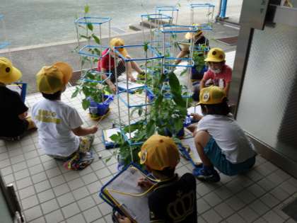 日に日に大きく育っているアサガオを見て、気づいたことなどをまとめていました。