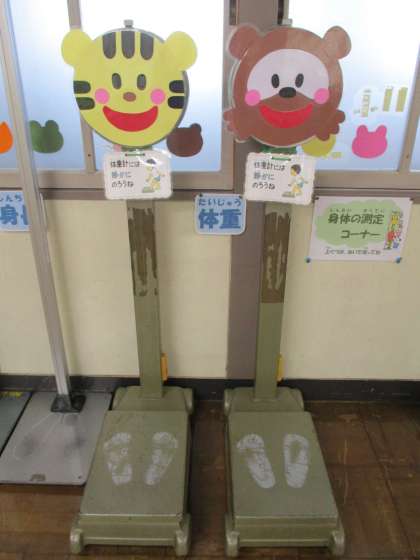 保健室の体重計「とら美」と「ぽん太郎」です。