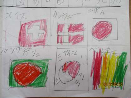 写真1:国旗調べ(今から将来の成長が楽しみですね。)