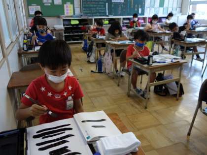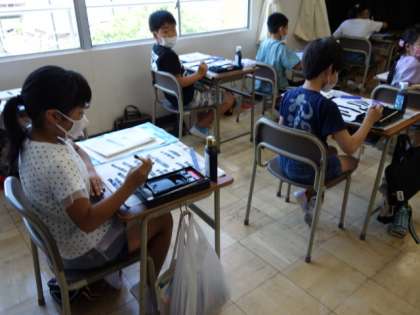 始筆と終筆の筆づかいを意識しながら、横画の練習をしていました。