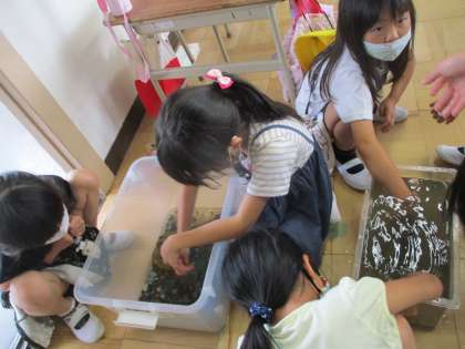 今の季節はは田んぼに「ホウネンエビ」や「カブトエビ」などがいて、水槽で飼って観察しています。生き物の生態を観察することが勉強の始まりだと思います。