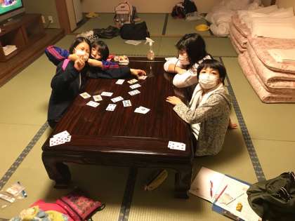 全員が集まれませんので、部屋ごとにカードゲームなどをしています。
