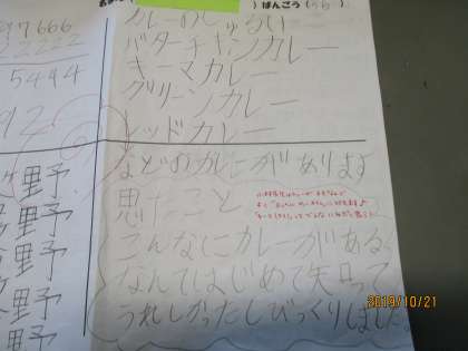 1枚目:カレーの種類について調べました。「こんなにカレーがあるなんて初めて知って嬉しかったしびっくりしました。」
