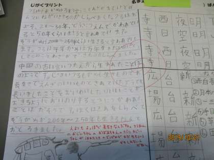 1組では、先週末も自主学習の宿題を出しました。保護者の皆さまのご協力もあり、13回目の今回も力作揃いです。今回の2枚は自分の考えたこと・思ったことまで書けた「学び」となっているものです。「自分の考えをもつ」ということは将来とても大切になることですので、継続して続いていくよう声をかけていきたいです。