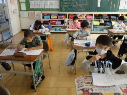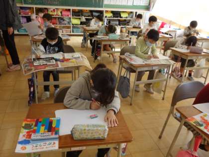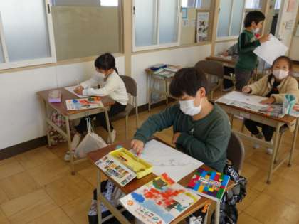見本のすごろくを参考にして、自分だけのユニークなすごろくを作っていました。